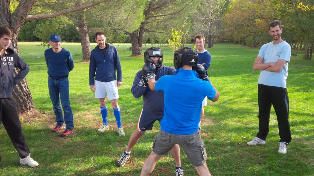 • Le sport est un lieu d’apprentissage du réel, des règles, des limites, du déploiement de la force et de l’agressivité. Nous animons des ateliers de maitrise de soi et d’affirmation de soi autour du conte anthropologique « Jean de fer »